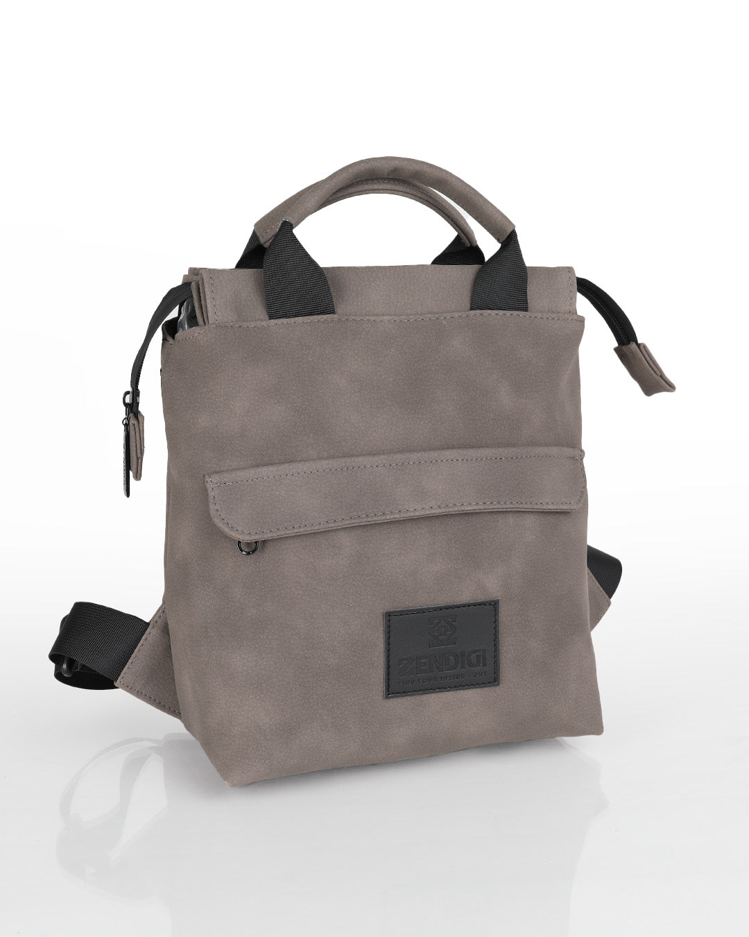 On the front there is an external zipper pocket that allows quick access to your phone keys or anything you need while moving. Two top handles allow carrying it like a small briefcase which adds comfort in tight spaces and gives another way to use the bag.