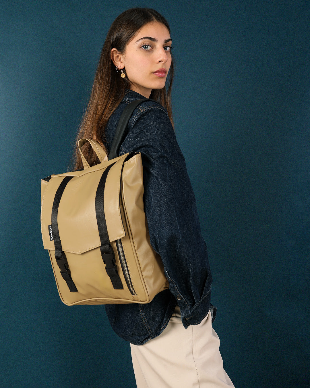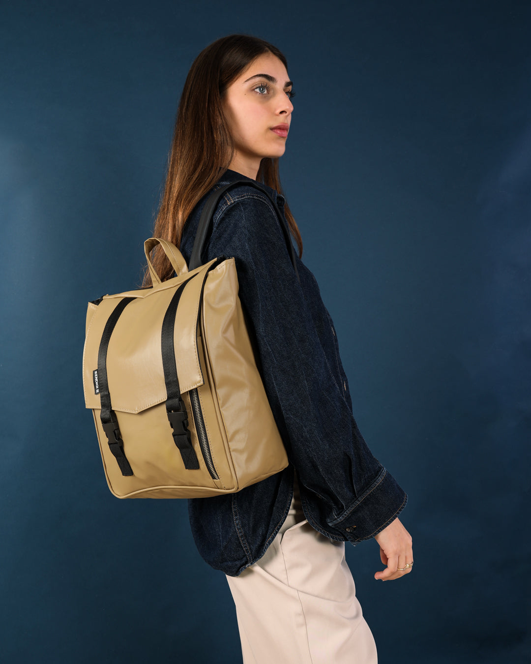 Mini Tokyo closes easily with two flexible clips that stay secure even when the backpack is full.