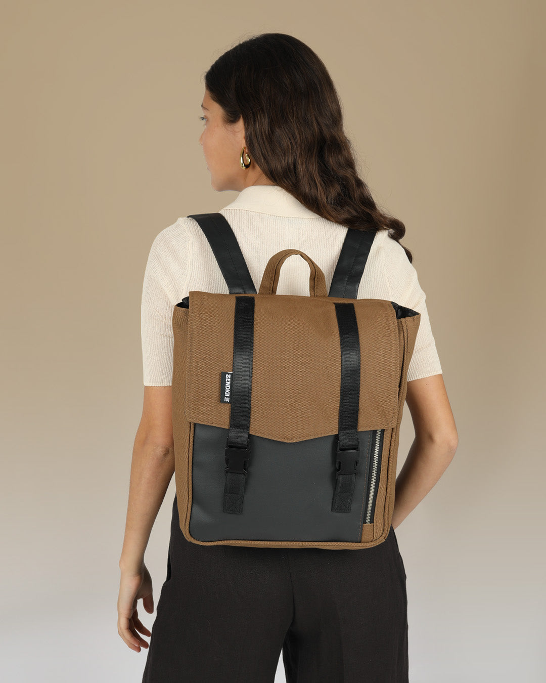 On the back you have Zendigi’s signature rear pocket for fast access to your phone or wallet without opening the bag.