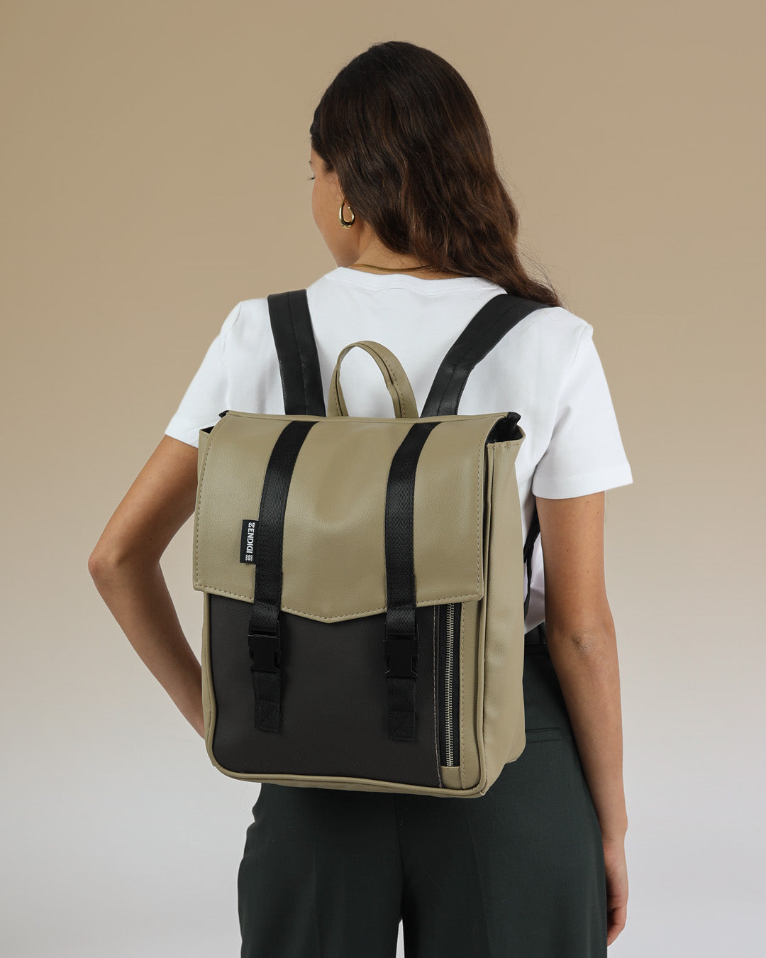 On the back you have Zendigi’s signature rear pocket for fast access to your phone or wallet without opening the bag.
