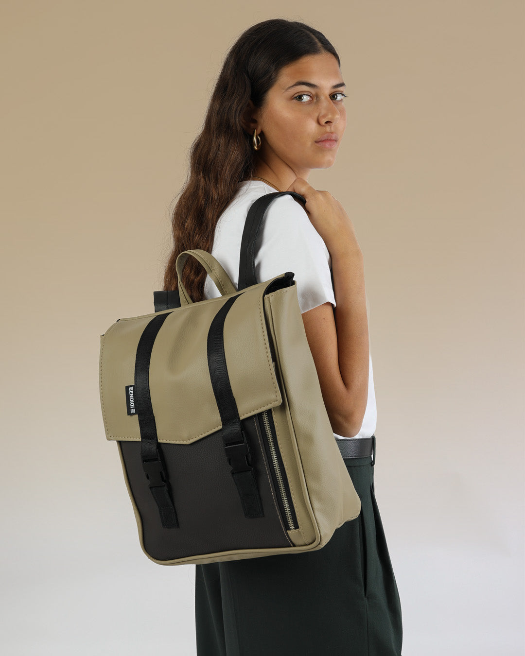 Mini Tokyo closes easily with two flexible clips that stay secure even when the backpack is full.
