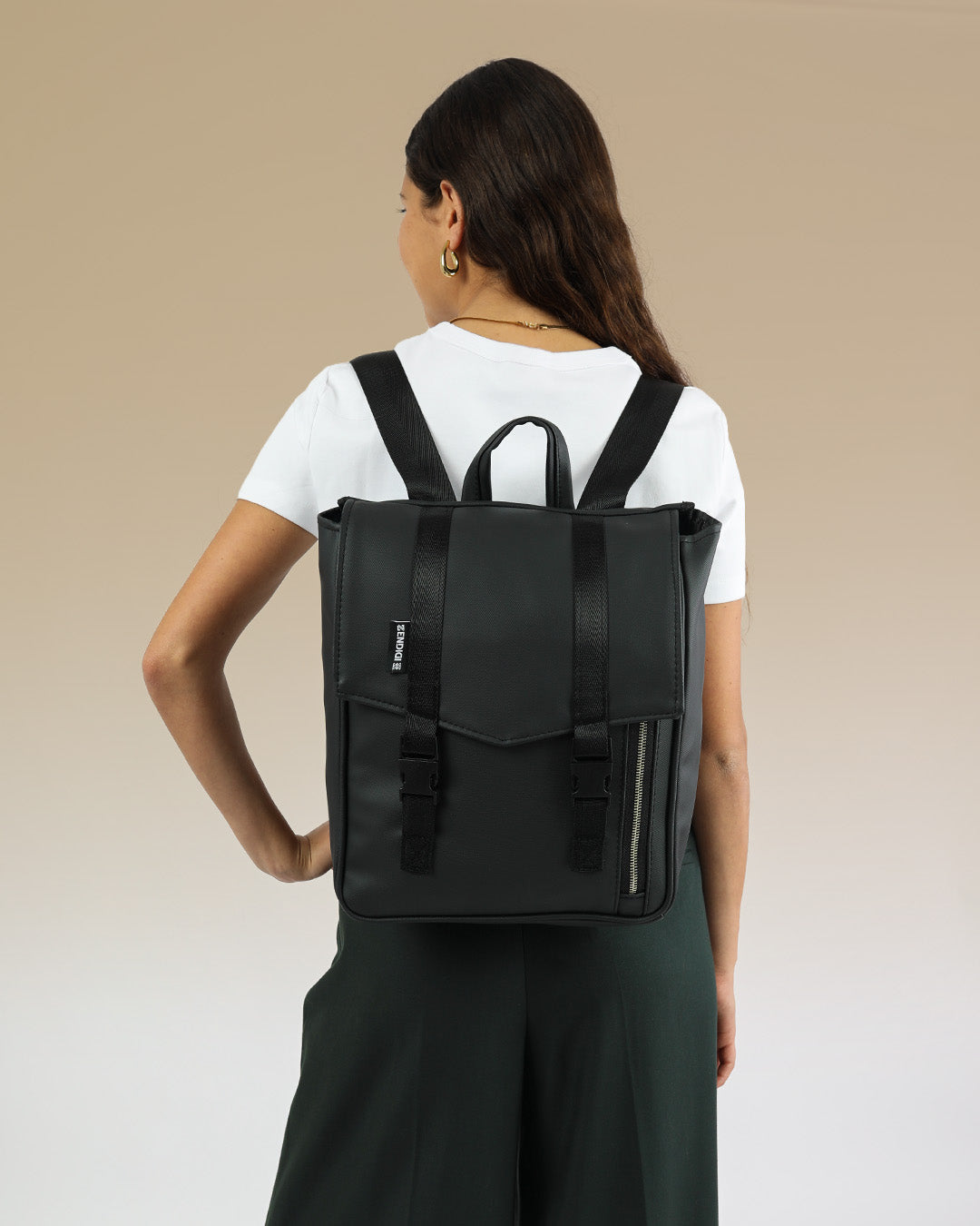 Mini Tokyo closes easily with two flexible clips that stay secure even when the backpack is full.