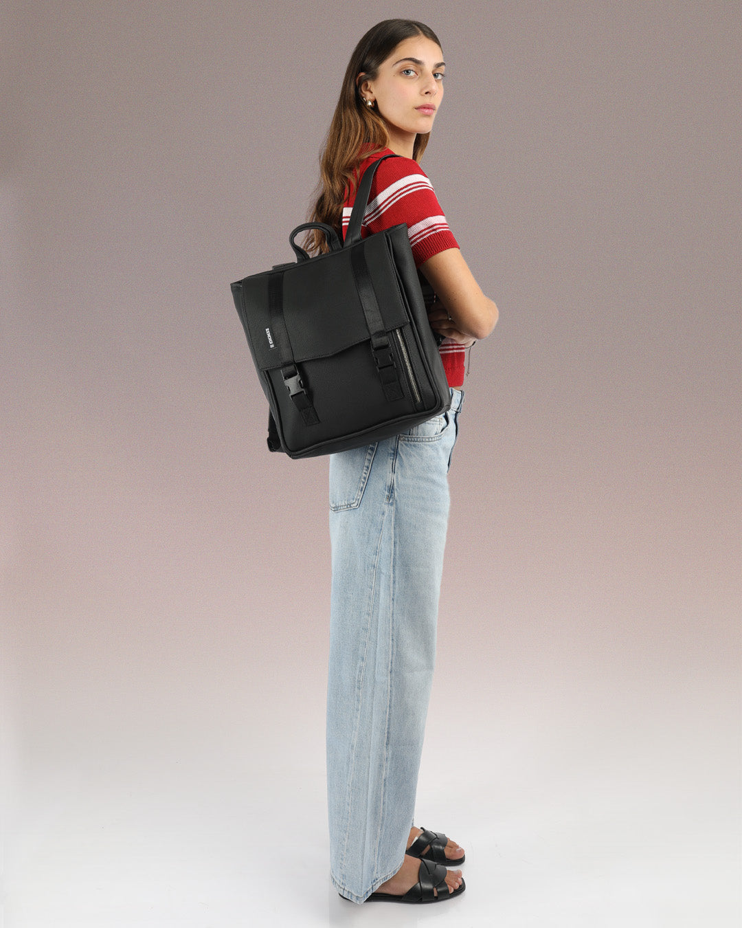 Mini Tokyo closes easily with two flexible clips that stay secure even when the backpack is full.