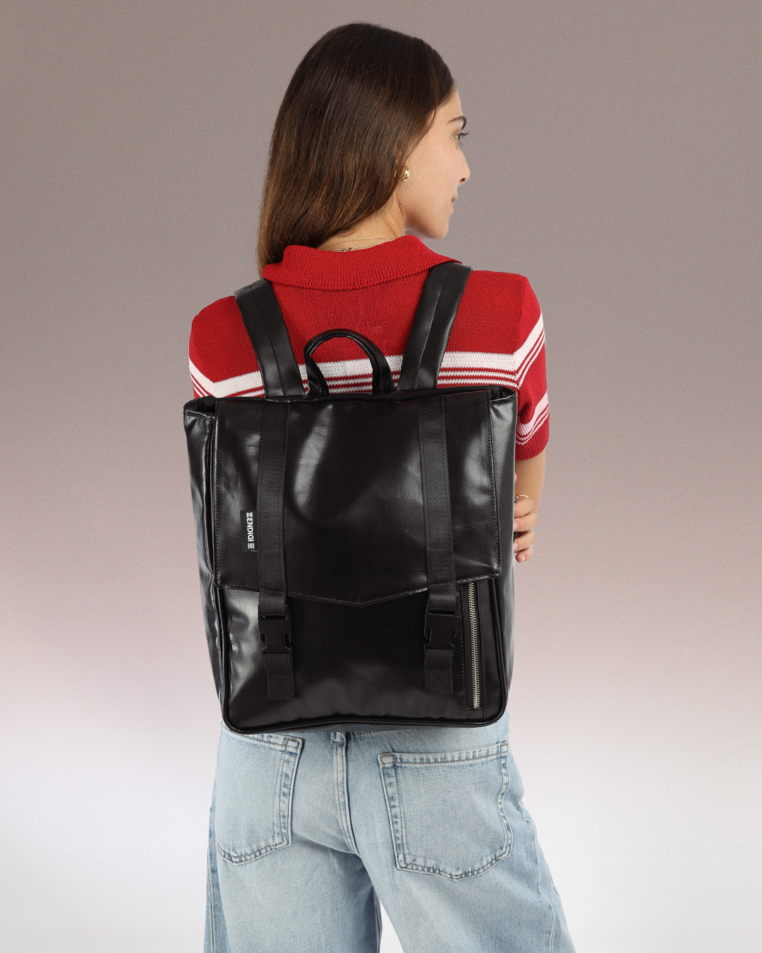On the back you have Zendigi’s signature rear pocket for fast access to your phone or wallet without opening the bag.