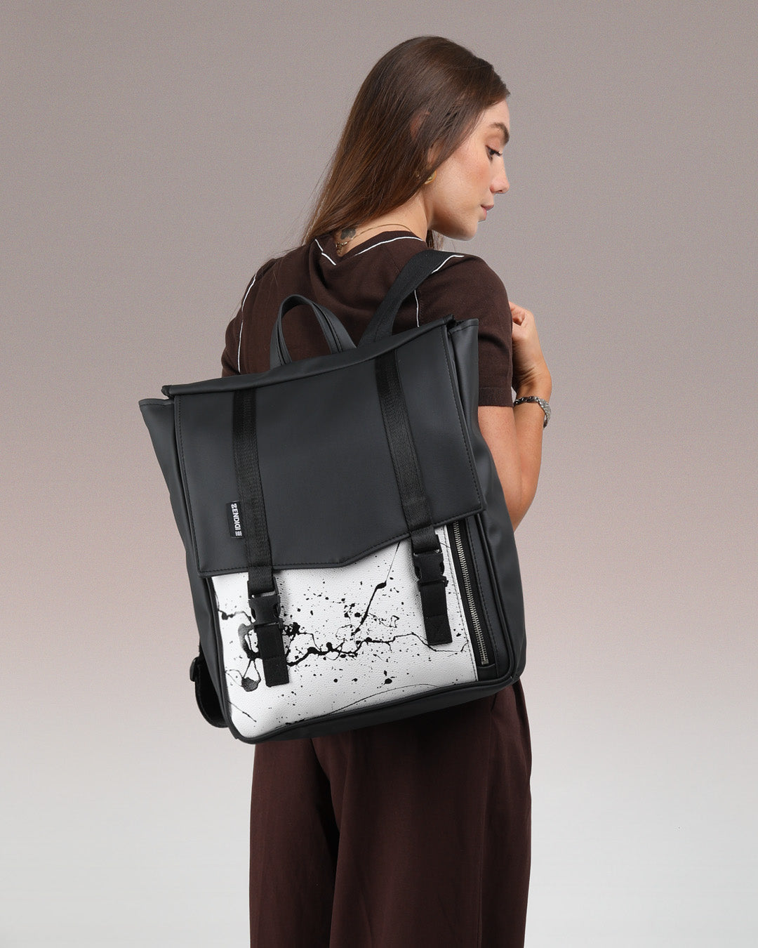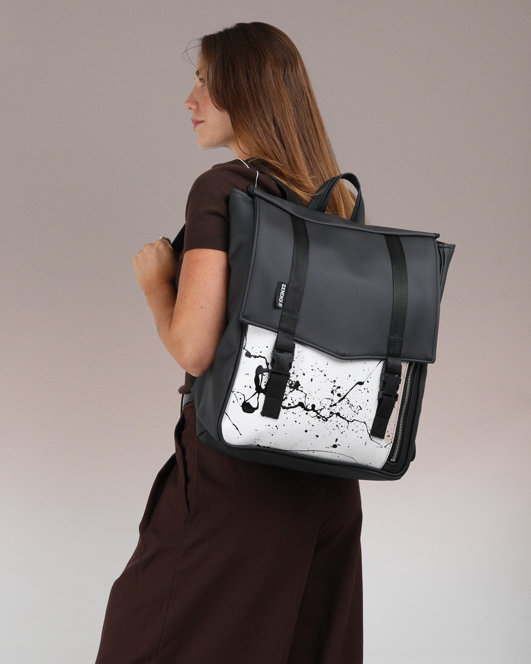 The main compartment is roomy and organized holding notebooks a lunch box a water bottle a small side bag and everything you need for a long day. Tokyo closes easily with two flexible clips that stay secure even when the backpack is full ensuring daily comfort on the move.